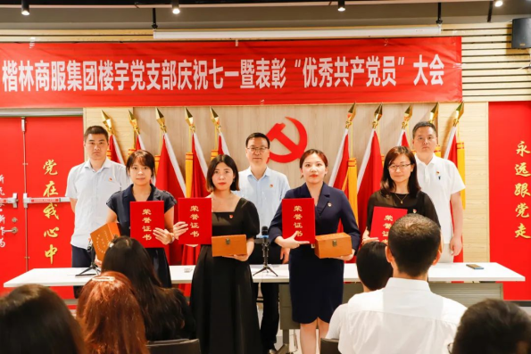 楷林商服集團樓宇黨支部開展“慶祝七一暨表彰優(yōu)秀共產(chǎn)黨員大會”,會上表彰了4名優(yōu)秀共產(chǎn)黨員,黨支部書記帶領(lǐng)全體黨員重溫了入黨誓詞,并一起合唱《沒有共產(chǎn)黨就沒有新中國》,支部黨員們及預(yù)備黨員一起觀看了楷林商服集團樓宇黨支部工作匯報視頻、學(xué)習(xí)了黨的二十大精神。